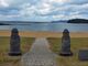 階段状の坂を下ると、2本のトーテムポールの先に美しい海水浴場が広がります。弧を描く砂浜から岬の先端、外海への景色も綺麗です。右手を回ると芝生の丘が続き、水中展望台への長い桟橋が目に入ります。丘上にはハド岬とハートを懸けたお洒落なオブジェが建ち、美しい景色と相まってテンションが上ります。