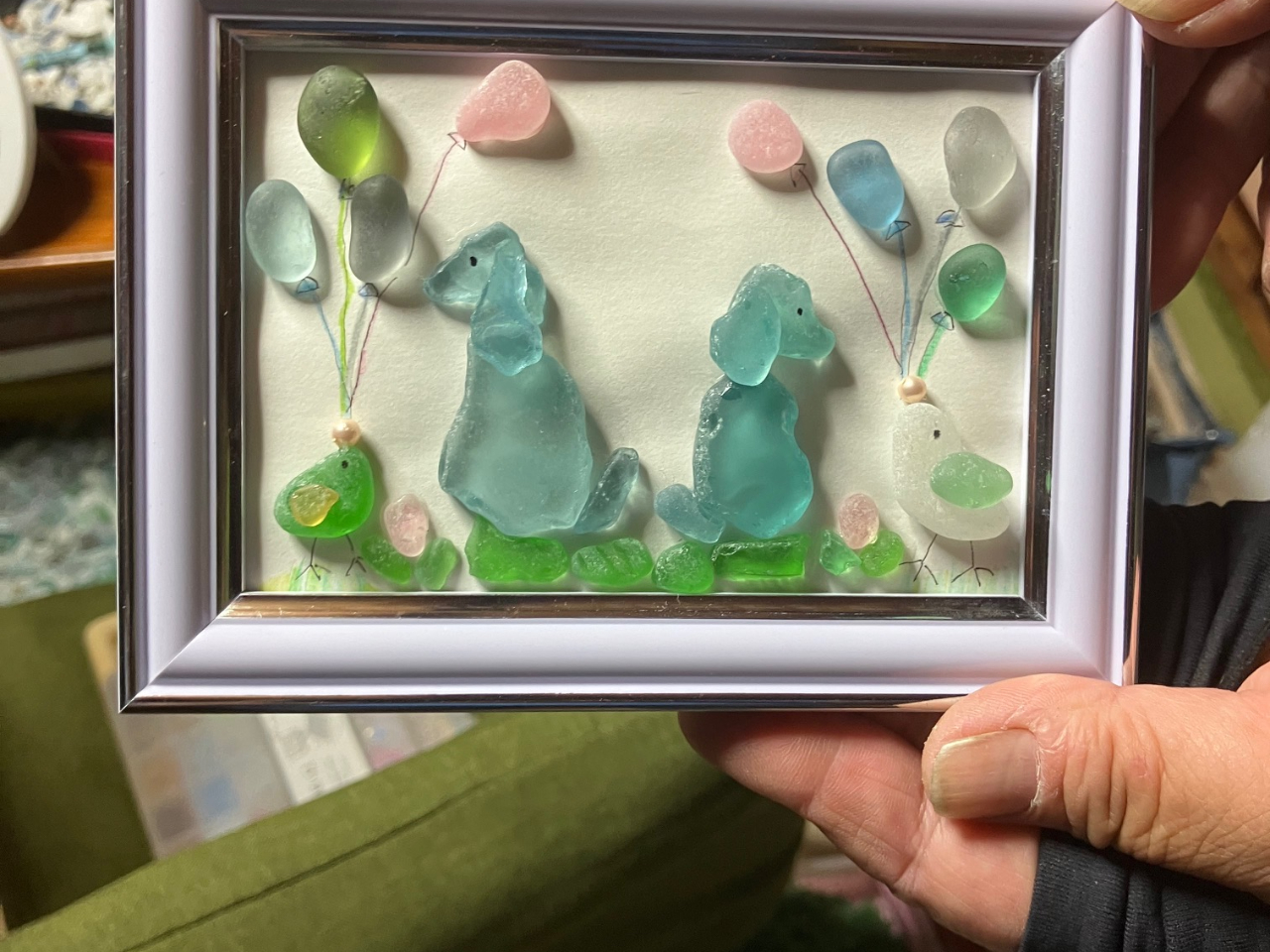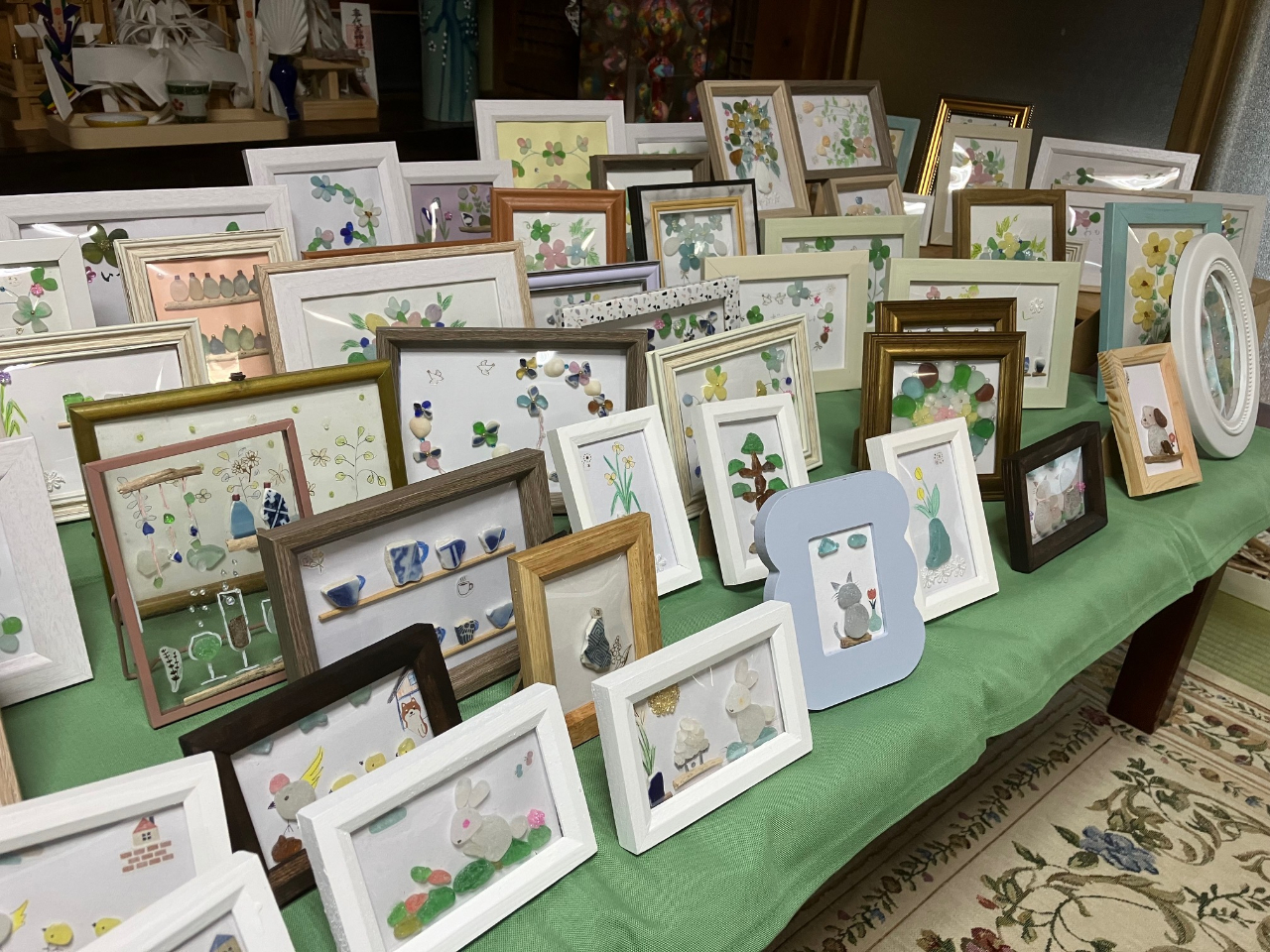 自分で探した天然シーグラス(講師が用意したものも使っていただけます)を用いてオリジナルアート作品を制作!好きなフレームをご選択頂き、動物やお花など思い思いにデザイン!講師の作品を参考にしたり、型紙の下絵を用意する事も可能です。