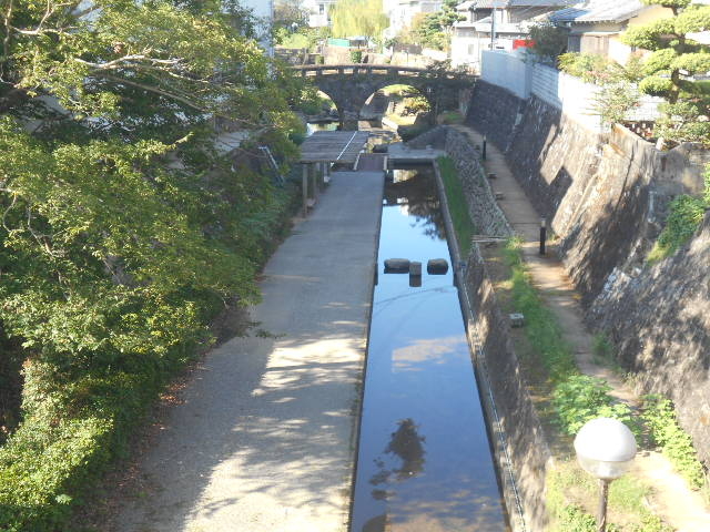 菊池川の支流か、運河のような小さな川です。小さな川ですが、両岸は緑地として整備され、また多くの石橋が架かっています。なので、すぐ傍の菊池川よりも見応えがあるように思えます。