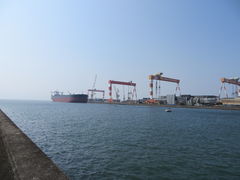 港の横にある運動公園です。海沿いにはいこいの広場があり、ナイター設備のあるグラウンドや体育館もあります。海にはタンカーが着いていましたが、小さなヨットも係留されていました。