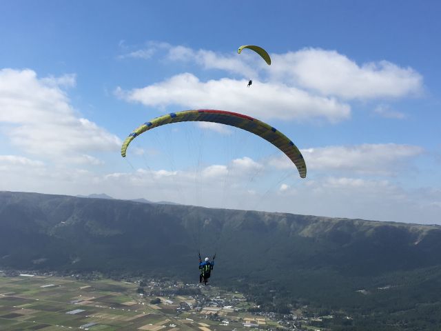 ◆阿蘇外輪山(450m)からパラグライダー2人乗り操縦体験