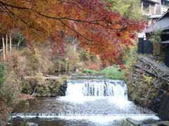 渓流が流れて、古い建物が群集する街中を、坂を上ったり下りたりしながら歩き回りました。道中、数多くの旅館や温泉浴場をはじめ、足湯付きの喫煙所も散在しています。ユニークな商品を取り扱う店へも立ち寄って、自然に富んだ環境で、のんびりした旅ができました。