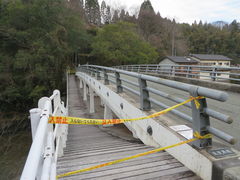 この付近は、「九州のへそ」だそうです。日向街道の馬見原宿があった場所だそうで、町並みも保存されています。肝心のこの橋ですが、上段が車道、下段が歩道の、二段の橋になっています。ですが、2020年3月3日には、歩道は立入禁止になっていました。歩道には穴が開いており、川面を覗けるようになっています。