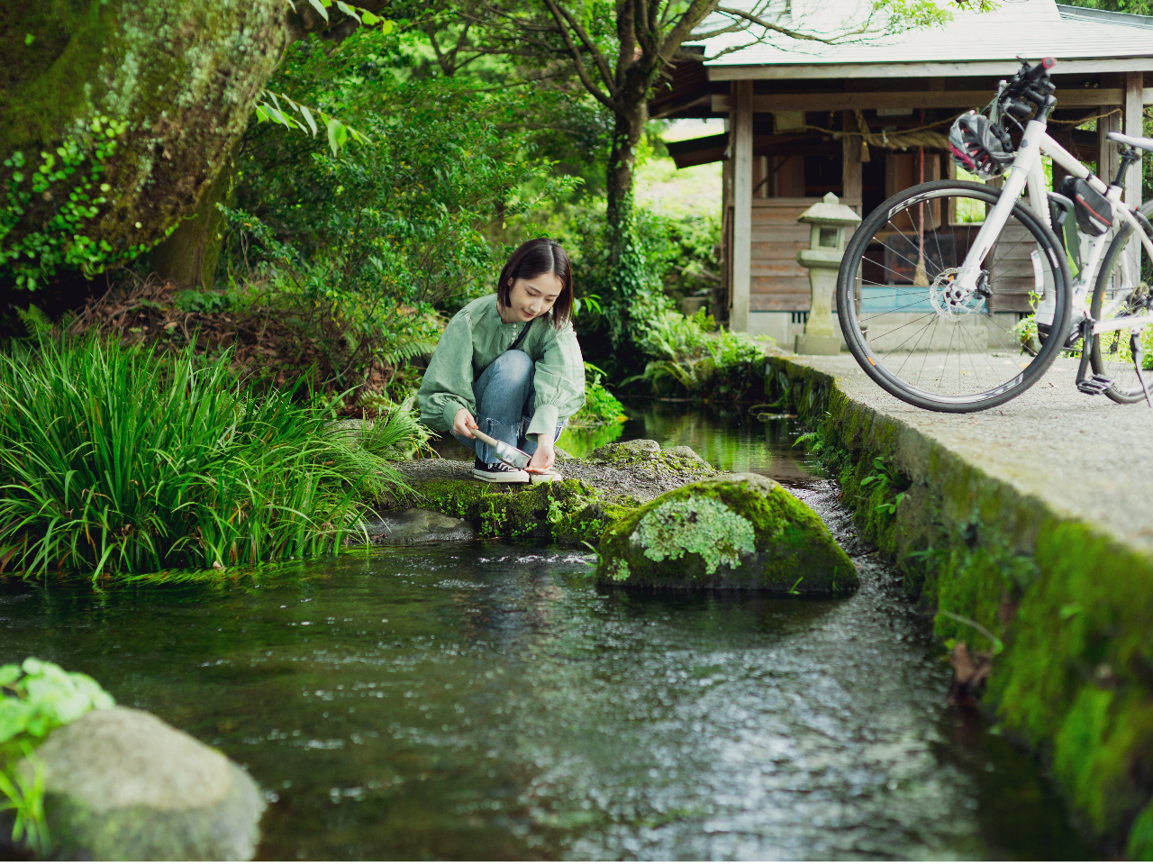 @南阿蘇の歴史や自然のスポットを電動アシスト付き自転車e-bikeで坂道も気にせず自由にサイクリングを楽しめる。