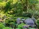 伝来寺の本堂脇から入る庭園です。入口近くには池と大きな木があります。蛙が元気でした。その周囲の木もまたバランスの良い配置が成されているように思えました。そのまま山の斜面を登るように紅葉を中心に多くの木が植えられています。きっと秋には紅葉の斜面を背景にお寺が映える事でしょう。非常に見事な庭園です。
