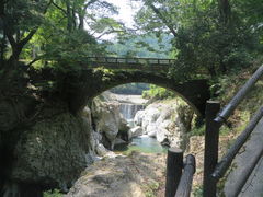 猿飛千壺峡の散策コースで、念仏橋の下流は大きな壁の様な岩が立ち並んでいて、甌穴とは違った趣があり。