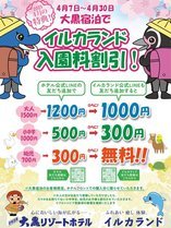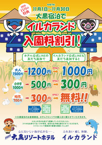 割引内容:大黒宿泊でイルカランド入園料割引