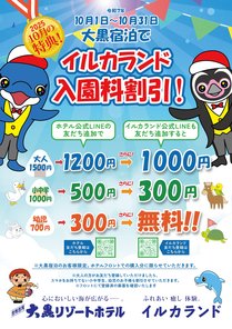 ◆割引内容:大黒宿泊でイルカランド入園料割引
