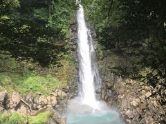 彼女が寝ている間の早朝、散歩がてら訪れました。霧島温泉郷の中で一番大きな滝がココ千里ケ滝です。霧島川上流湯之野温泉近くの山深い渓谷にあり、三段の滝があり落差が75m(上段50m、中段20m、下段5m)と霧島山中で最も落差があります。水煙を上げながら一気に落ちる光景は圧巻ですが、細い道の先に駐車場があり!さらにゆっくり歩いて15分ほどのところに一番大きな上段の滝が見える場所があります。帰りが登りとなるため、体力に自信のある方はさらに300mほど先から中段の滝なども愛でることができますよ。夏は渓谷なので涼しくって気持ちいい滝です。
