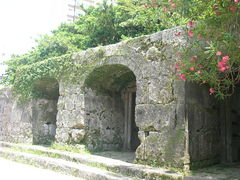 那覇空港からバスに乗って崇元寺バス停で降りると石づくりの門が見えます。