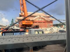 ゆいレールの駅から少し歩きます。囲い越しに火災の被害から再建工事中の首里城を見ることが出来ます。復興展示室で、再建がされていく様子を動画で見ることが出来て、とても根気のいる作業をされていることがよく分かります。