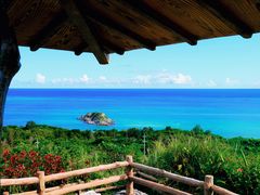 石垣島の中ほどに、島がくびれた伊原間の手前にある展望台。ここは昔から知られた景勝地で、ここに立つと左に伊原間湾、正面にはんな岳、右にサンゴ礁郡がきわだった美しさを見せる。