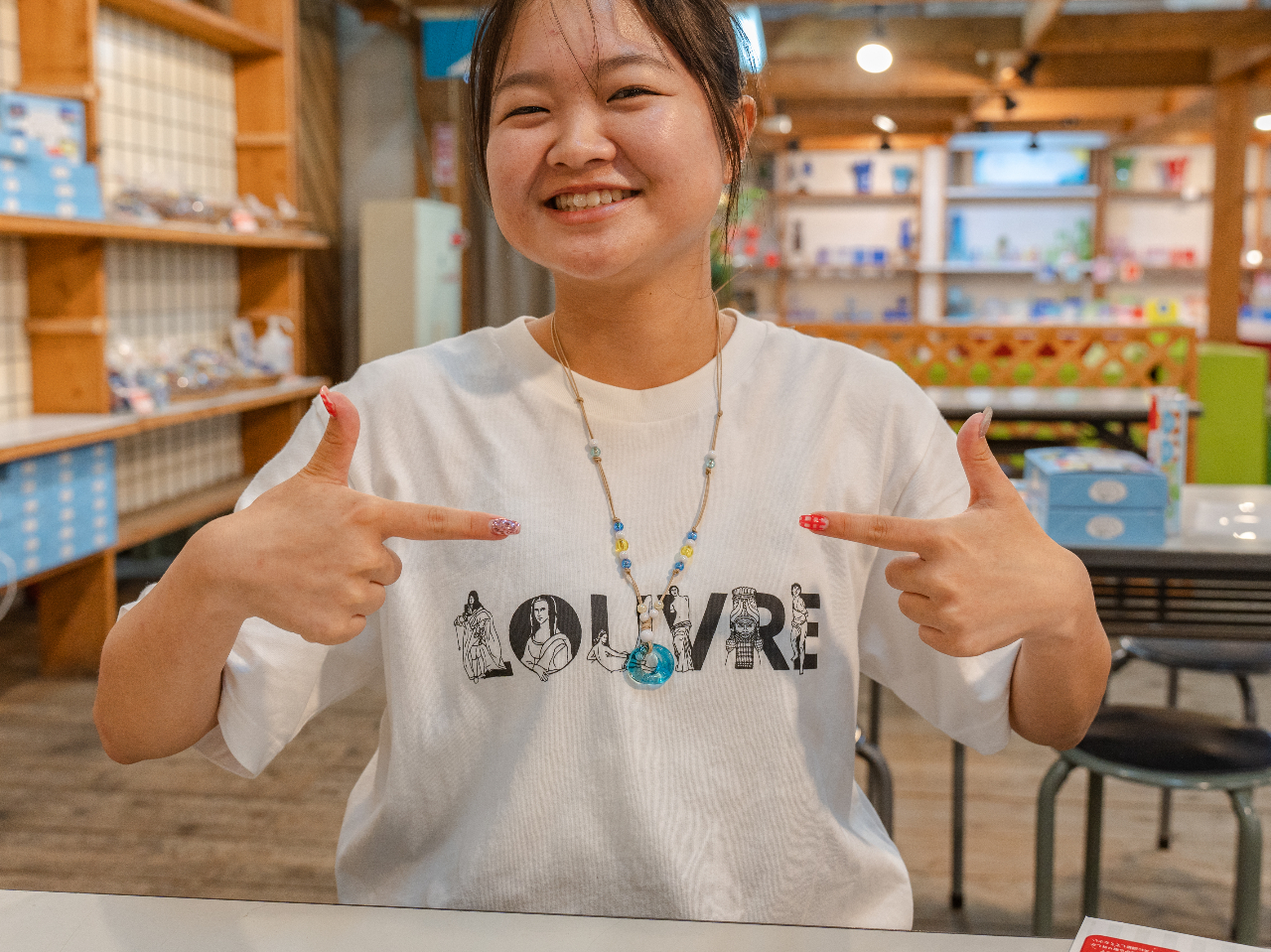 職人手作りのパーツやアクリルビーズを使ってネックレスをお作り頂きます。