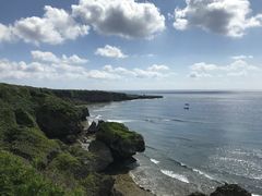 背が高く伸びたサトウキビ畑の中、舗装された細い道路を対向車が来ませんようにと祈りながら行った先に喜屋武岬がありました。駐車場やトイレも用意されていて、数十メートルの断崖絶壁の真下に青い海が広がる様は絶景です。ちょっとした広場には蘊蓄が書かれた石碑とともに平和のモニュメントがありました。その先の海側にタオルのようなものを巻いた置き物が気になって回って見てみると、頭にタオルを巻いた2体の童像がありました。海に向かい目を閉じて穏やかに微笑むような表情を見た途端に、思わず目頭を抑えました。あの悲惨な地上戦からまだ100年も経っていないという事実に不思議な感覚を抱きつつ、敬虔な気持ちになり手を合わせていました。