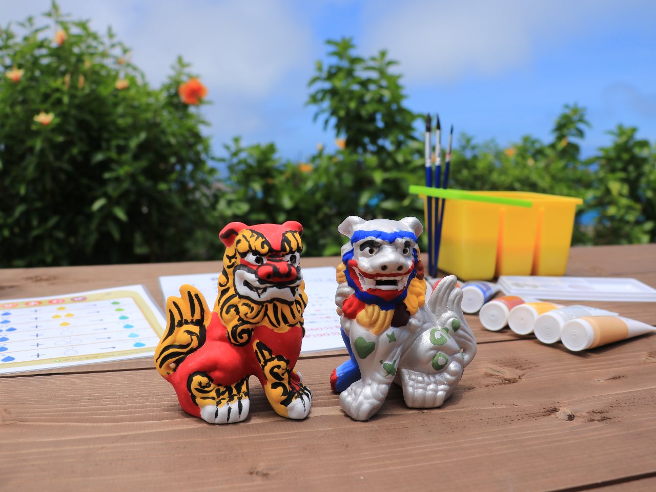 素焼きのシーサーに色付けして世界に一つだけののシーサーを旅の思い出に残しませんか?※陶芸体験ではなく、シーサーの色付け体験になります。