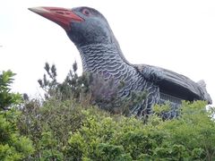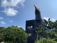 沖縄の代用的な鳥・ヤンバルクイナを模った展望台。遠くからでもはっきりとその形がわかり、インパクトが大きい。この地域は観光客も少なく、のんびりとできる。