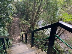 比地大滝へ向かうまでの遊歩道。駐車場に車を停めてキャンプ場にある入口で入場を支払い、滝までは片道約40分(往復約80分)のお手軽ジャングル散策が楽しめます。整備はされていますが、急坂や階段がやや多いかな。