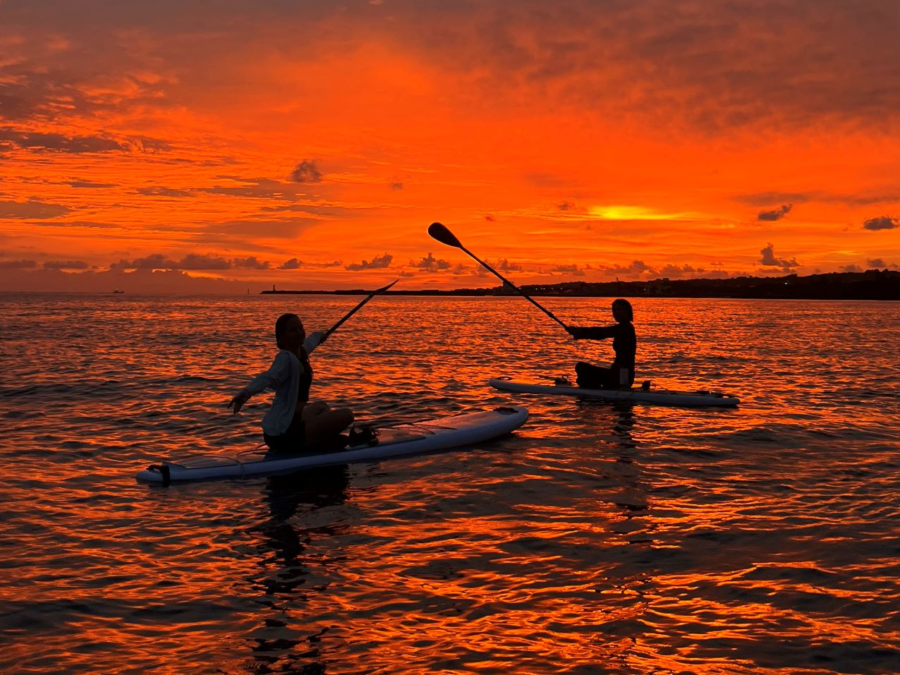 透明度の高い伊江島の海の上で夕陽を見ませんか?1組限定でプライベート感あるプランです!初心者の方でもスタッフが丁寧にご説明しますので安心してご参加下さい!