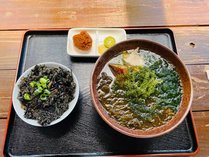 おすすめは、沖縄三大海藻(もずく・海ぶどう・アーサ)、カツオのなまり節、シークァーサーをトッピングした「海をのむそば」です。