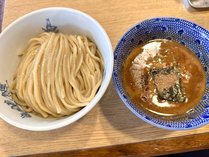 太麺と濃厚なつけ汁が絡みちょうどいい味が口の中に広がります。