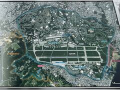 四階の展望所に置かれた、嘉手納基地を中心とするジオラマ。町の面積の82パーセントを基地が占めているという。