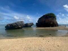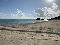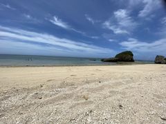 那覇市内から南へ20キロ弱。うっかり通り過ぎそうな場所。駐車場は500円。遠浅の海岸は人も少なく静かで気持ち良い。シュノーケリングするには満潮時がお勧め。食堂、シャワー、トイレあり。ライフセイバーは居ない?ので節度を守ったリゾートを。