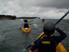 奥武島からあおしょうびんというガイド会社のシーカヤックとシュノーケルの無人島探検ツアーに参加しました。多くのツアーは、はての浜へ船で行き、餌付けで魚を集めるようなツアーで、そうしたツアーと一線を画した、海の生態系に影響を与えないコンセプトでガイドを選びました。途中から雨が降り出しましたが、無人島まで2人1組でシーカヤックを漕ぎ、無人島でシュノーケルをしました。無人島の周りは、少し流れがありましたが、子供と手をつなぎながら泳ぎ、様々な熱帯魚を見ることができました。ちょっとした冒険気分も味わうこともできました。大人7500円、子供6000円と少し値段は張りましたが、満足できました。