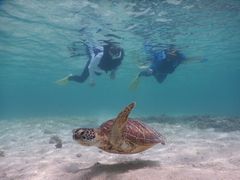 宮古島の中心から少し離れているので、シュノーケリングのガイドさんに車で連れて行ってもらいました。お昼もあまり人が多くなく、とても過ごしやすいビーチでした。ウミガメ2匹と一緒に泳ぐことができ大満足でした!