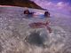海は遠浅。奥に行くとお魚います。お昼過ぎると人が多い時は濁る感じです。