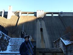 “大泉の滝”から200m程上った4叉路を右折すると、直ぐに“四万 日向見公園”の大きな駐車場があった。園内に公衆トイレと東屋があるのみの簡素な公園である。5cm程の残雪の上を歩いて四万川ダムの堤体直下まで行ってみた。直近から見上げるダムは迫力があり、堤体の造りが良く解って感動的であった。“日向見公園”から急勾配、ヘアピンカーブの道を上り切ると四万川ダム右岸の国道に出る。ダム堤頂近くの四万川ダム駐車場に車を停めて、堤頂を歩いてみた。四万川ダムは堤長:330m、堤高:90m程の中規模の重力式コンクリートダムで、堤頂は左岸→右岸方向の一方通行で一般車も通行ができるが、冬季に入り奥四万湖周回道路が通行止めになっているため、ダム関係者のみの通行になっていた。堤頂には上・下流方向に少し張り出した展望所が幾つも設けられている。下流方向の展望所からは、先程訪れた堤体直下の公園を見下ろしたり、下流の谷間を見渡せたりして、かなり迫力のある景観が楽しめた。左岸にあるダム管理所は内覧もできる筈であるが、今回は前まで行って引き返した。