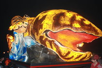 祭り後半には、黄金色に光る“はんざきねぶた”も登場!湯原温泉がはんざき一色に染まります( *´艸`)