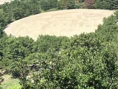TV番組「銭形平次」のタイトルバックにもなった「寛永通宝」を型どった巨大な砂絵。東西122m、南北90mの楕円形だが、琴弾山頂の展望台から見るときれいな円形に見える。1633年、藩主の領内巡視を歓迎するため領民が一夜にして作ったと言われ、見た人は一生お金に困らないという言い伝えもある。