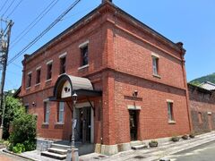 大洲の町中には歴史的な建造物も多々遺っていて、肱川沿いの立派な赤レンガの建物も目立ちます。おおず赤煉瓦館は旧大洲商業銀行本店、現在はギャラリー兼地場作品の販売を行っています。