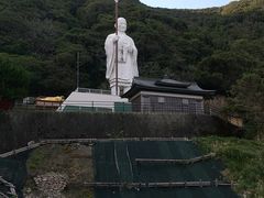 太平洋を見下ろすように立つ、高さ21mの若き弘法大師の銅像。1984年に建立されたもので、力強い表情が印象的だ。その前面には全長5・5mの金色の涅槃像も横たわる。これらは明星来影寺の一角にあり、台座内部を拝観することも可能。中には大師の手形を安置し、ステンドグラスの胎蔵界曼陀羅を祀る。