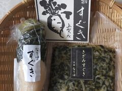 すぐき菜は上賀茂の特産。これを乳酸発酵させたのが『すぐき漬』。なり田は創業文化元年(1804年)の老舗で、すぐきを作り始めて300年以上もたつ。実はこのすぐき漬、夏と冬では酸味が異なるらしい。独特の酸味がうまさの秘訣だが、ちょっと酸っぱいと思ったら、醤油を少々かければマイルドな味に。