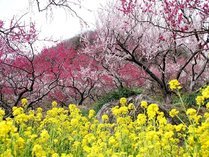 幕山の山麓斜面に約4千本の紅梅・白梅が"梅のじゅうたん"のごとく咲き誇り、