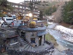 四万川が支川の新湯川と合流する荻橋の袂の河原に建つ共同浴場である。石造りの建物内に男女別の浴室が設けられているので、人目を気にせず入浴できる今風の造りになっている。温泉街らしい風景の中に建つ半円形の建物自体も見栄えが良く、四万温泉街のシンボルの一つとして相応しい景観を創っている。また、建物の上が展望所になっていて、四万川の上下流の美しい景色を眺めることができた。浴場の利用は15:00までで、付近は閑散としていた。