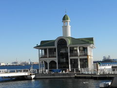 女神橋の端に位置するぷかりさん橋。臨港パークにお散歩にいく途中でこちらにも立ち寄りました。欧風の建物で、2階はレストラン、1階は待合室となっており、ヨコハマグランドインターコンチネンタルホテルの専用観光船などの発着場所としても使用されています。