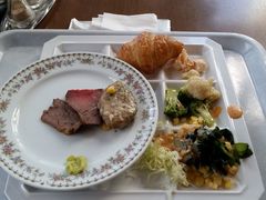 日帰りバスツアーランチで訪問しました。ブッフェで、外の表示のお値段を見ると1800円。土地代金でしょう。ホテルブッフェにありがちな炭水化物中心の物でした。美味しかった物は、ローストビーフ、カレー、クロワッサン、グレープフルーツ、パイナップルでした。