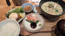 名物の冷や汁に、チキン南蛮とお刺身が付いた満足感のある定食で、新宿にいながら宮崎の味を気軽に楽しめます。