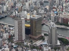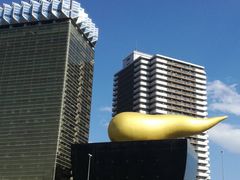 浅草から隅田川に架かる吾妻橋を渡ったところにあります。金色に輝く大きなオブジェがビルの上にあるので、とてもインパクトがあって目立つビルです。