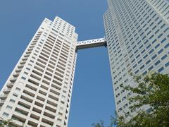 築地から徒歩10分程。ホテル、オフィス、レストラン、ショップなどが入居するタワーです。ツインタワーになっているので遠くからでも存在感があります。