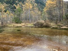河童橋に向かって歩いていると左に入る道があり、そこの先にとても綺麗な茶色の池がありました。知らずに通り過ぎる方多く、もったいないなぁと思います。雑草の中を通り過ぎないと見えないので、是非見過ごさず立ち寄ってほしいと思います。