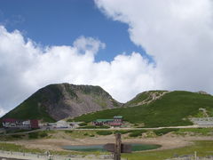 乗鞍岳へは、バスに乗って平湯から畳平まで行きます。畳平は日本の道路最高所でもあります。標高は2715メートルです。運がよければ、雲海が見えます。また、富士山も見えます。残念ながらこの日は曇り時々晴れで雲がすぐ近くにあるっていうだけでした。