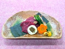 お刺身、郷土の歩荷汁が付いた和食膳をどうぞ