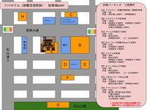 またフロントでは周辺のコインパーキングをまとめた地図をお渡ししておりますので、