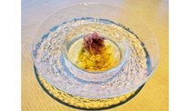 みょうがをアクセントに、チキンコンソメジュレ&トマトのグラニテで