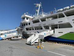 今年からリニューアルした『ニューフェリーあぐに』にのりました。先代のフェリーよりも一回り大きいです。スピードも少し早いのではないかと。パンフなどでは片道2時間15分とありますが、往復それぞれ2時間切りました。