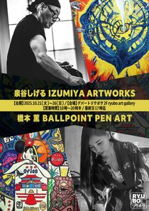 泉谷氏による都会的なSF冒険アートと、橋本氏の自由でポップなボールペンアートが融合し、