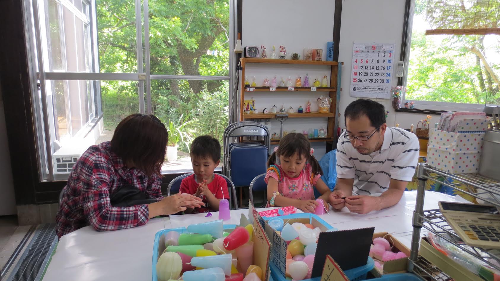 はぜのき館では水俣の櫨からできたロウソクに好きなように模様をつけて、自分だけのオリジナルロウソクを作ることができます。